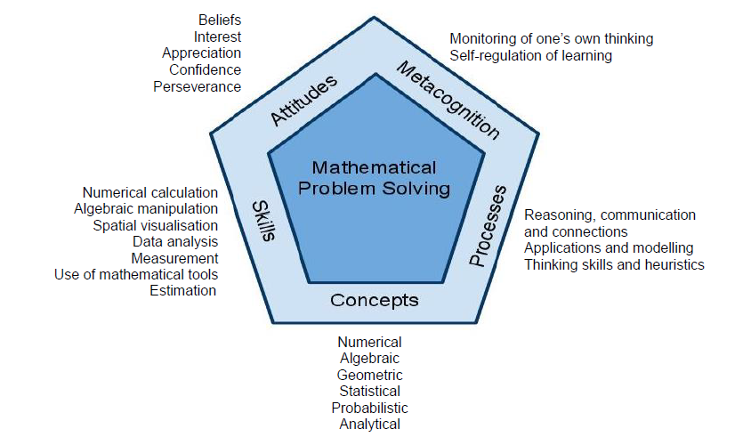 The mathematics framework sets the direction and provides guidance in the teaching and learning of the mathematics curriculum. The central focus of the framework is mathematical problem solving. The development of the ability to use mathematics to solve problems is dependent on five inter-related components – conceptual understanding, skills proficiency, mathematical processes, attitudes and metacognition.
