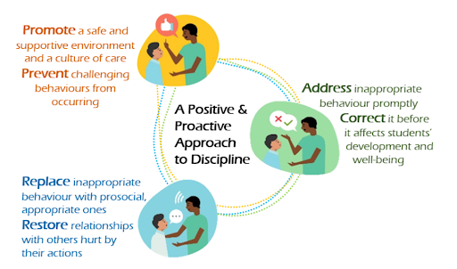 In enacting a positive and proactive approach to discipline in the school, we consider the three aspects.
